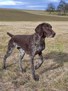 Mit Ihrer feinen Nase markiert Sie das Wild schon von Weitem, ihre Vorstehmanieren sind exzellent.