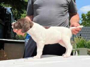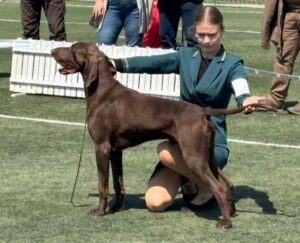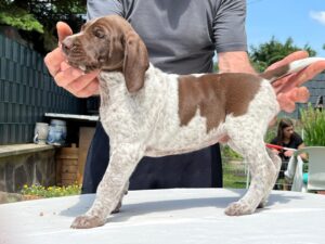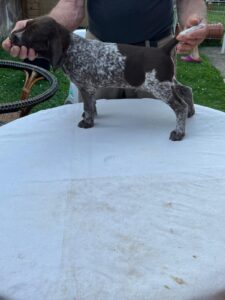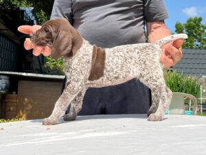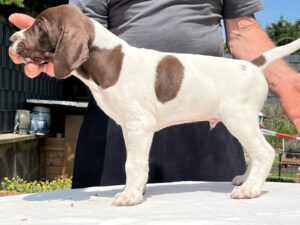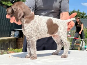 Ito ist ein Rüde des Mittelschlages (65cm) vim allerbesten Format, der in jeder Faser edlen Deutsch-Kurzhaar verkörpert. Besonder hervorzuheben ist seine exzellente Rückenlinie. Der Rüde besticht durch Intelligenz und Ruhe. Im Feld zeigt er bei bester Nasenführung und Kopfhaltung bestechende Vorstehbilder am Wild (Nase 4h).